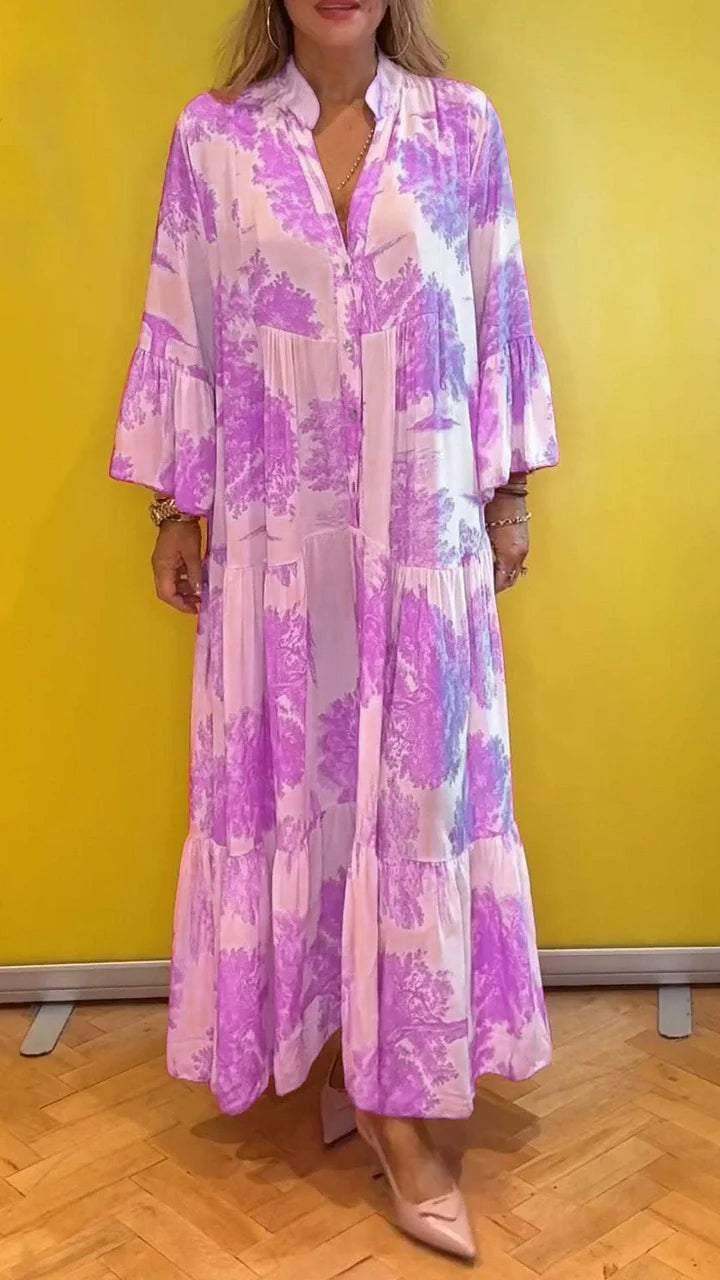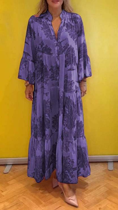 Women's summer dress with V-neck and forest pattern Maxi dress